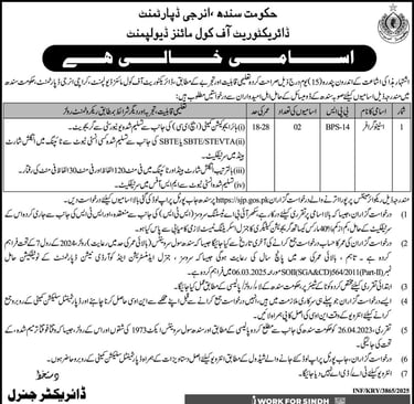 Directorate Of Coal Mines Development DCMD Sindh Jobs 2025