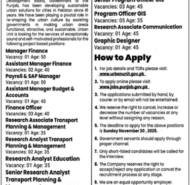 The Urban Unit Lahore Jobs 2025 For Manager Finance